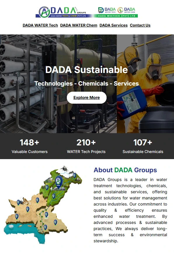 Voice of DADA (VOD) and DADA Groups are leading Pakistanβs sustainable growth through advanced technology and chemical innovation. Under the leadership of Dr. Aamir Shahzad (PhD) and Dr. Aqsa, we are revolutionizing water treatment, green energy, and industrial solutions for a secure future for upcoming generations.